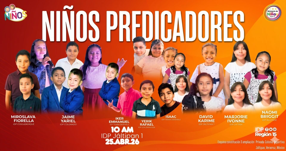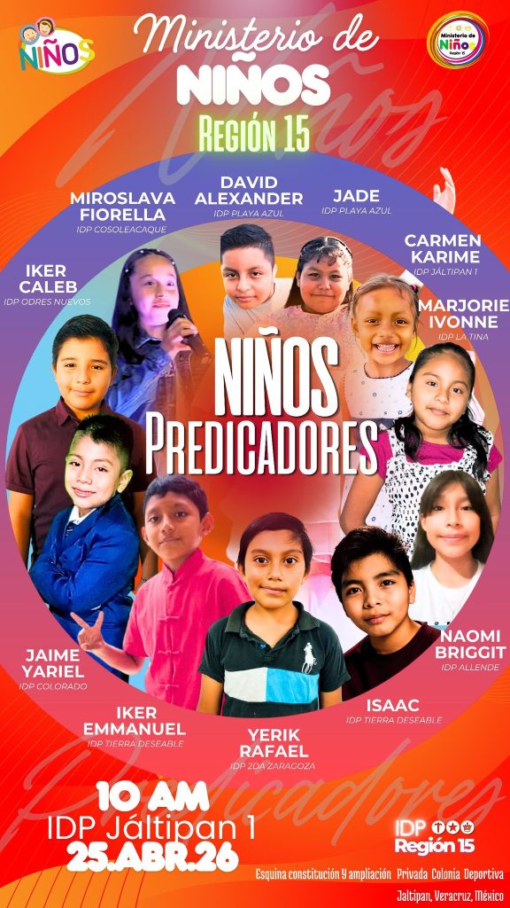 La Iglesia de Dios de la Profecía (IDP) en México se viste de gala. Bajo el lema de «Niños Predicadores», la Región 15 llevará a cabo un evento especial este sábado 25 de abril, donde el protagonismo recae en los más pequeños, quienes han dedicado tiempo y esfuerzo para prepararse como mensajeros de la Palabra de Dios.